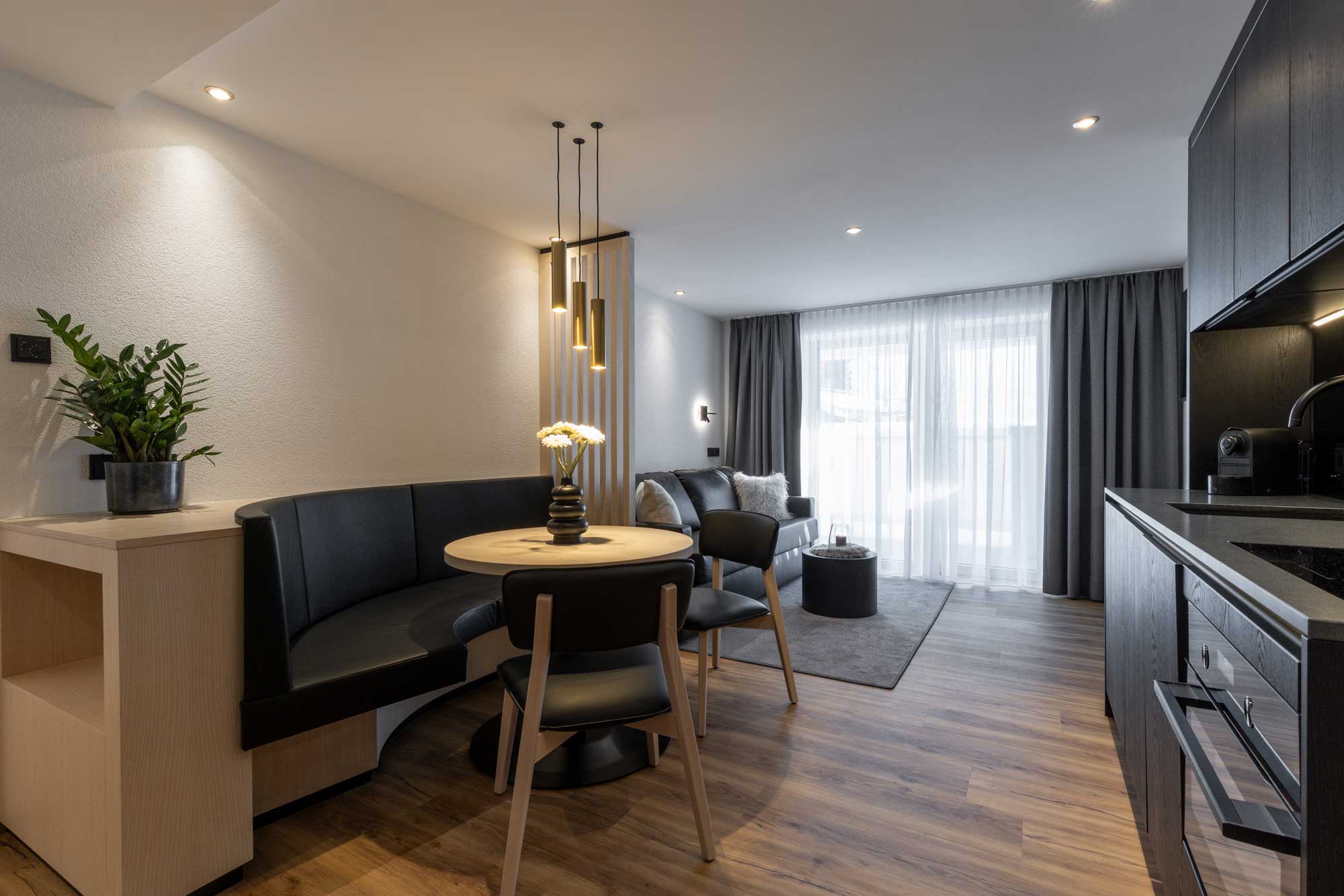 The Aurikel Corso Aparthotel is the ideal accommodation to take time out in the magnificent mountains. Select the apartment that best meets your needs and indulge in exceptional comfort in a prime location. Whether you’re travelling as a couple, with family, or friends, our apartments provide stylish comfort as well as a warm, inviting atmosphere for 2 to 6 guests.